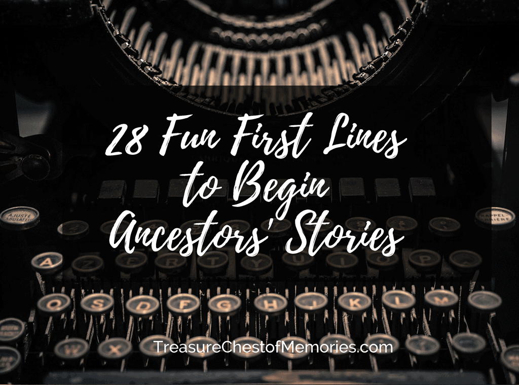 28 Fun First Lines to Begin Ancestor Stories from TreasureChestOfMemories.comThis only scratches the surface. What did I miss?  I’d love to hear your ideas.
