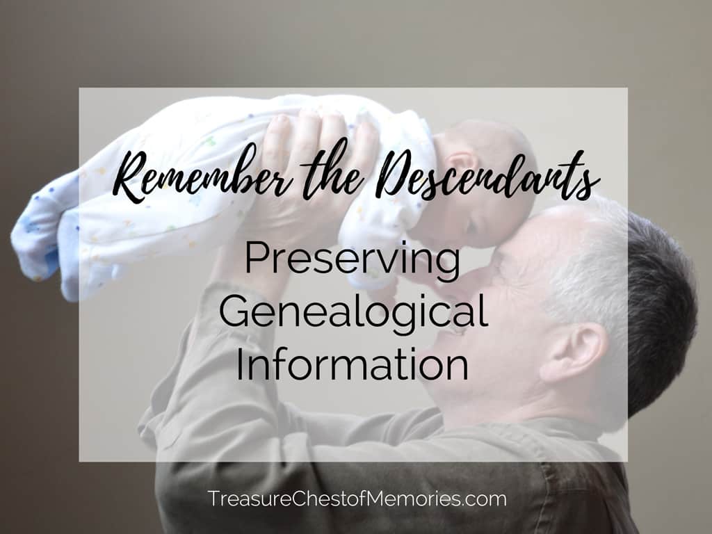 In her Remember the Descendants blog party, Elizabeth O’Neal asks family historians how they plan to preserve genealogical research for future generations.