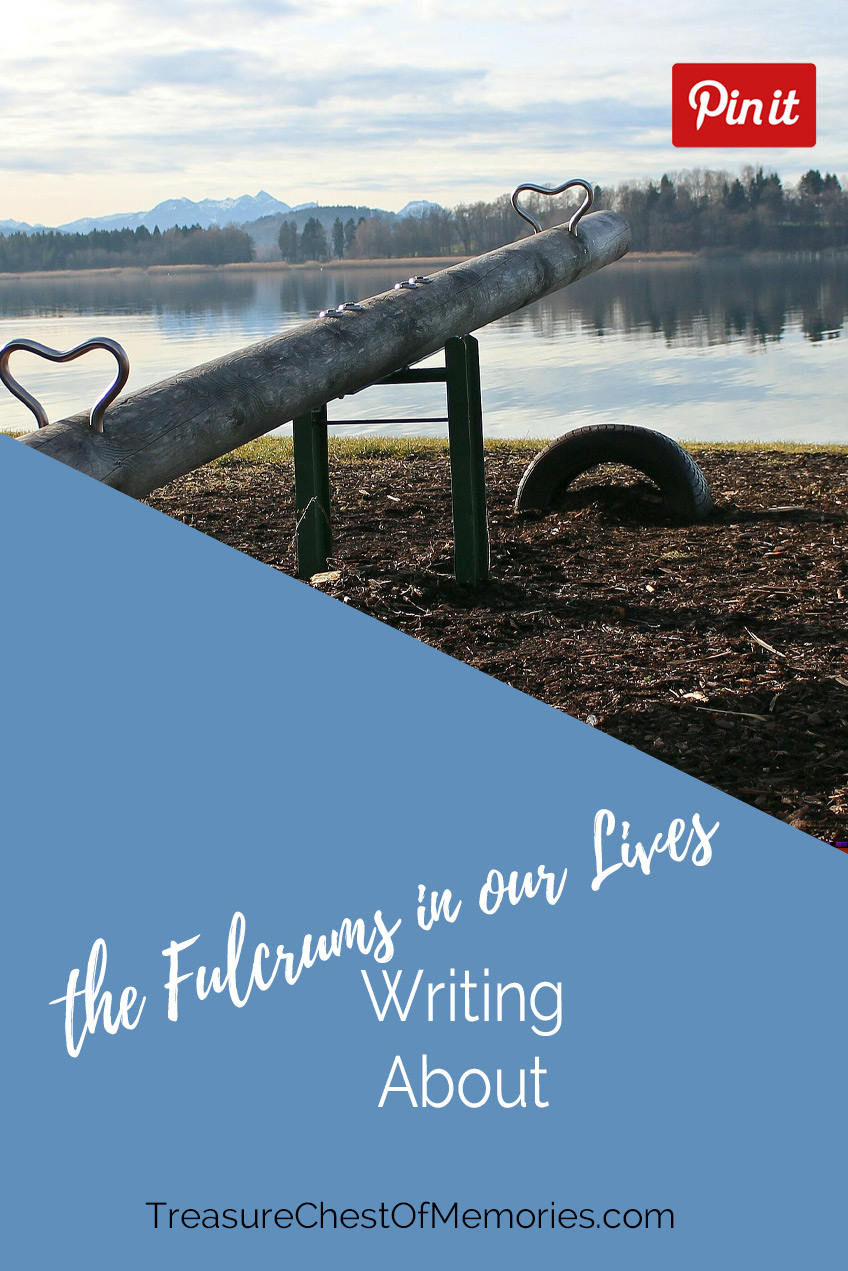 We all people, events, and situations in our lives, who (or which) determine the teeter of our life’s teeter-tooter. Writing about the fulcrums in our lives provides a unique glimpse into our circumstances and relationships with and affections for each other. Who and what is capable of righting our balance or off-set our personal system of weights and measures.